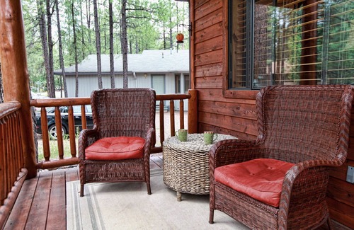 ¡PISOS NUEVOS! Nuestro refugio de montaña es una acogedora cabaña ubicada en los altos pinos en las montañas blancas cerca de Pinetop Lakes Country Club. Nuestra cabaña está bellamente decorado con todos los muebles de registro. Es a pocos minutos de todo tipo de actividades al aire libre como el esquí de nieve, pesca, senderismo, golf, paseos a caballo, juegos de azar, senderos ATV, tiendas y restaurantes. Disfrute del clima de las cuatro estaciones en nuestras dos cubiertas con parrilla y cenar al aire libre. Leer un buen libro y disfrutar de la chimenea de piedra en el invierno o tomar una siesta de relax en la hamaca al aire libre o dormir bajo las estrellas en el futón.