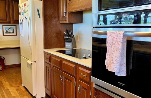 Nuestra casa tiene tres habitaciones: la principal (rey de Cal.) Está en el extremo opuesto de las otras dos habitaciones (reina, 2 gemelas) con la cocina y el espacio habitable en medio. Master tiene un vestidor y baño en suite. Las otras dos habitaciones comparten un baño en el pasillo, y todas las habitaciones tienen vista al agua. Discreto tocador junto a la sala de estar principal. Tome un desayuno o un cóctel temprano en la noche en el porche junto a la cocina.