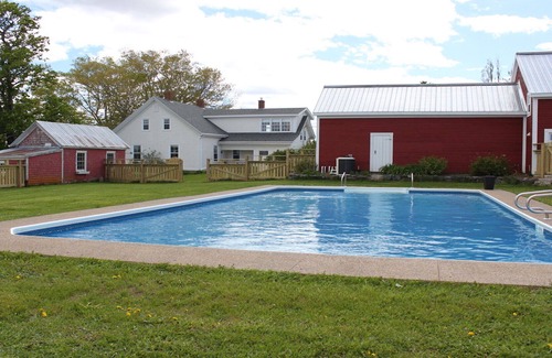 La granja principal es de 2 pisos, y tiene 5 dormitorios, 2 baños y capacidad para 10 personas. Tiene una cocina de pino totalmente equipada. Hay un porche sombreado que tiene vistas de Minas Basin y Wolfville a lo lejos, y una cubierta lateral protegida que es un lugar perfecto para tomar un café por la mañana.