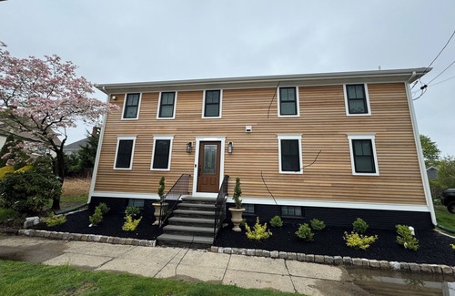Stay comfortably in Cranston at this 3-bedroom house. With 2 queen beds and 1 full bed, our fabulous property offers a peaceful retreat for guests. You'll find everything you need, from an iron to full Pro Appliances, utensils, cookware, washer, dryer, everything you need to make your stay excellent. Enjoy the convenience of being so close to so much in the Ocean State. The Floor Plan of the house is smooth and welcoming. Rear Stamped Private Concrete Patio. So many cool mom and pop restaurants just minutes away. Downtown Providences is within minutes just north and Beautiful Newport is minutes just south. Many Shopping plazas, Grocery Stores, Medical Facilities, seafood stores, all types of Foods close by, Etc. If you want to go Get a fresh Lobster right off the boat, sure can. All bedrooms have 4k Smart TVs that are Full motion wall mounted. Memory Foam Beds with super soft comforters with plenty of pillows in every bedroom. Having 2 Full bathrooms gives you plenty of space for all. You're in short walking distance to Edgewood, a small cool strip of great different Restaurants, Bakeries, Ice cream and more. You have Old Federal Hill just minutes away with some of New England's Best Foods. The home has a wonderful Dishwasher, Range Vent that vents outdoors to keep the food smell down, Large double door Refrigerator and a Convection Stove in the kitchen. Beautiful Farmhouse sink in the main Island that seats 3 people comfortably. There is a complete home security system for long term guests. The security system is active and connected locally to all emergency services. Verizon Fios Internet with a Whole Home Mesh Network that has a strong WIFI signal anywhere in and outdoor of the home. The home is located so close to Downtown Providence you could have Uber eats in minutes. You could have overnight items from Amazon delivered, there's an Amazon warehouse close by. Peapod can delivery all your groceries right to you. The house is located exactly 10 mins from Providence Place Mall and many other Attractions and Great Places like The The AMP and RI Convention Center. You have East Greenwich with its Historic Little area that has all kinds of Rhode Island Favorite restaurants. There's Route 2 in Warwick, loaded with every shopping store Company you can think of.