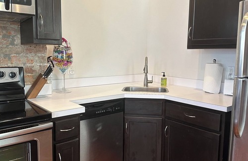 Prepara una comida casera en la cocina, equipada con horno, placa de cocina y frigorífico, además de cafetera y tetera, hervidor eléctrico y microondas. Conéctate al wifi, o relájate frente a un Smart TV. El cuarto de baño incluye un secador de pelo, toallas y papel higiénico. Y como podrás aprovechar la lavadora y la secadora, no te hará falta llevar mucho equipaje. Otras comodidades de este alojamiento de 1 dormitorio y 1 baño incluyen ropa de cama, una tabla de planchar, aire acondicionado y calefacción.
