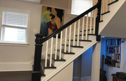 This charming historical home, built in 1900 by Colonel McDonald. Colonel McDonald lost his life in World War II. The park across the street was dedicated in his memory by his wife. Fully renovated in 2021, the home seamlessly blends modern comfort with its rich history and is centrally located, making it convenient to explore the area. The first floor features a spacious living room, formal dining room, kitchen, and full bathroom. On the second floor, there are three large bedrooms, a kitchenette, and a beautifully updated bathroom with a freestanding bathtub and separate shower. The third floor houses a large room used as an art studio, which is not open to guests.