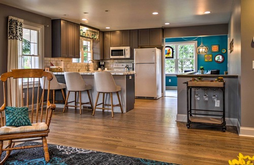 Descubra 'La ciudad amigable' de Harrisonburg, Virginia, desde esta excelente casa de alquiler de vacaciones ubicada a solo 4 millas del centro de la ciudad. Completamente remodelada en 2018, esta encantadora casa de chapa de ladrillo cuenta con un interior perfecto con muebles modernos, decoraci��n moderna y obras de arte coloridas del estudio de vidrieras del propietario al lado. Después de pasar el día en bicicleta o explorar la animada ciudad, 6 huéspedes pueden relajarse en la cubierta de esta espaciosa morada de 2 dormitorios y 3 baños con 2,160 pies cuadrados de espacio habitable.