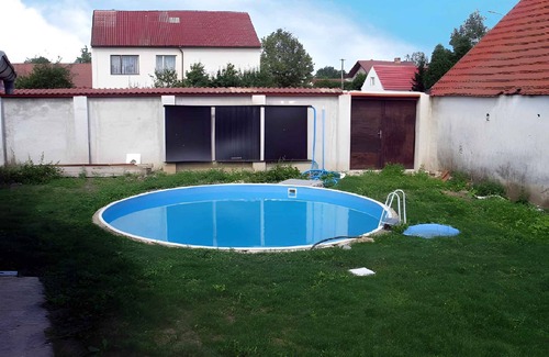 The holiday apartment is furnished in a modern and typical country style. The property is located on the outskirts. Also due to its quiet and sunny location the domicile is popular. Available for shared use: parasol, barbecue facilities, terrace, garden furniture and campfire site. Suitable for seniors and the disabled person.LocationPonedraz, 300 m above sea level. The holiday apartement is located on a 300 sqm garden plot with meadow. The landlord does not live in the house or on the property. The property consists of 2 separate apartments. Apartment CSR BOS 177 (12 people) is in the same building. It is located in a small quiet village in South Bohemia, which is surrounded by numerous ponds. Access is via a side road (asphalted). Parking is available on the street in front of the house. Specialelectric heating.Facilities: baby cot. TV reception takes place via satellite. PoolAll pools are available for shared use. Outdoor pool (usable from early July to end of August, diameter 5.5 m, depth 1 m). Dogsallowed, EUR 3.00/pet per day. DistancesShopping 200 m, restaurant 200 m, town center 200 m. railway station in Frahelz 3 km. Spa town Trebon with a castle and historic city center 14 km. Hluboka Castle and hunters lodge Ohrada with a zoo 20 km. City Jindrichuv Hradec with a castle and aqua park 25 km. City Ceske Budejovice (Budweis) with many sights and brewery 30 km. UNESCO town of Cesky Krumlov with castle, castle and historic city center 50 km. In summer: Bathing possibility 100 m in Ponedrazsky rybnik. golf in Hluboka nad Vltavou 25 km. fishing in Ponedrazsky rybnik 1000 m. Sand quarry with swimming 3 km. Playground 30 m. The largest pond in the Czech Republic Rozmberk (480 ha) 10 km. In winter: Ski lift 30 km. Ski area 30 km. DivisionHoliday apartment, 2 floors, 4 rooms (including 3 bedrooms), 80 sqm, in total 9 beds, plus 1 baby cot. RoomThe entrance to your holiday apartment is located on the ground floor.Ground floor: Living room with fireplace and dining area (6 seats). Bedroom with 1 double bed. Cooking nook in the living room with electric stove (4 plates), fridge (icebox), microwave, coffee machine and electric kettle. Separate toilet with 1 washbasin and WC. Top floor: Bedroom with 3 single beds. Bedroom with 4 single beds. Bathroom with bathtub and WC. Terms of lease and pricesIncluded in the priceparking place, water, heating, bed linen, pool. Side costs-Costs on the spot:/Obligatory:electricity 0,20 € per kilowatt hour based on usage. final cleaning 14 € per object per stay. hand towels to bring along. local tax by local tariff.On request:baby cot 15 € per bed per week.Deposit:EUR 150,-/object