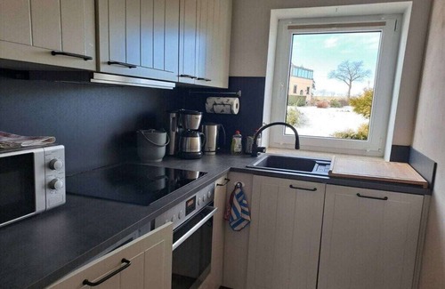 The holiday home was completely renovated in 2024 and features two separate holiday apartments. Both offer comfortable furnishings, underfloor heating, and a terrace perfect for barbecuing and relaxing. The holiday home can also be rented in its entirety. Lower Floor Apartment (approx. 45 m²): This ground-floor apartment is suitable for up to 3 people and includes: - 2 bedrooms (1 double bed (160 x 200 cm), 1 single bed) - Bathroom with natural light, walk-in shower, toilet, sink, and hairdryer - Kitchen with stove, oven, dishwasher, refrigerator, coffee maker, microwave, toaster, and dishes - Living room with TV, internet radio, dining table, and sofa Upper Floor Apartment (approx. 50 m²): Sleeps up to 4 people and a baby or toddler (cot and accessories available). The apartment consists of: - Bedroom with double bed - Bathroom with natural light, shower, toilet, sink, and hairdryer - Kitchen with stove, oven, dishwasher, refrigerator, coffee maker, kettle, toaster, and dishes - Living room with TV and sofa - Dining area for 4 people - Sleeping loft that can be used as an extra bed or children's play area LAN and Wi-Fi are available throughout the house. A washing machine can be used upon request. Bed linen and towels are included in the price. There are parking spaces for up to 3 vehicles. Bicycles can be stored, and a charging station for e-bikes is available. A grill, fire bowl, and garden furniture are available. Smoking is not permitted in the apartment, but you are welcome to smoke outdoors. The holiday home is located on a spacious, quiet property on the outskirts of Oelsnitz/Vogtl. in the Lauterbach district. It offers the ideal setting for relaxation, hiking, and cycling and is a perfect starting point for exploring the Vogtland region. We look forward to welcoming you to our holiday home.