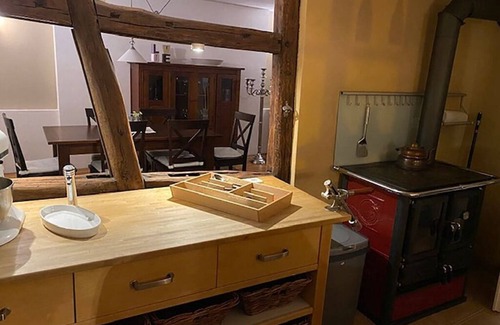 The medieval half -timbered building was revised according to the old model. It was built in 1675. The spirit of this time can be felt at the sight of the ancient works of oak beams that were bricked up with clay bricks. Take a breath. Particular attention was paid to the selection of the materials. Wood, clay, lime plaster and natural stone form the basis.