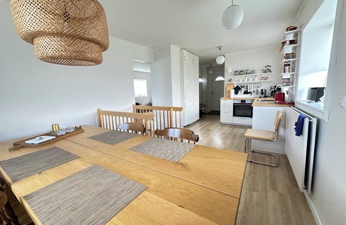 This newly renovated Holiday Home is located in Eyrarbakki, south of Iceland. Eyrarbakki is small town by the ocean, where you can find Black Sand beach, great location to see the Northern Lights ( if weather conditions are right ). Rauða Húsið restaurant is there, they are famous for their lobster.