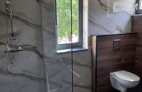On the ground floor, you'll find a spacious living area with a television and an atmospheric fireplace, perfect for relaxing together. The cosy dining area invites long dinners, while the fully equipped kitchen – including a dishwasher and coffee maker – makes meal preparation easy.