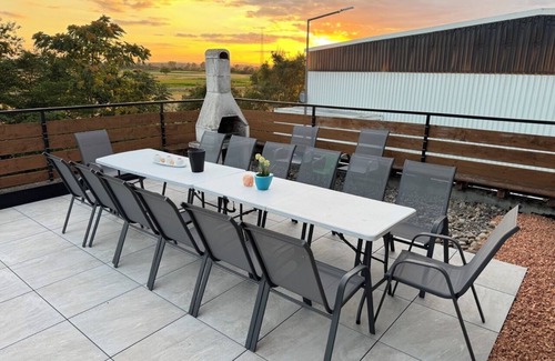 Relájate en el porche o patio hawaiano y disfruta de servicios como los muebles de exterior de esta casa de vacaciones de 360 m². Además, el alojamiento cuenta con una parrilla. En cuanto al interior, puedes poner a prueba tus habilidades jugando al futbolín y al tenis de mesa, o disfrutar del wifi y de la televisión por satélite o cable.