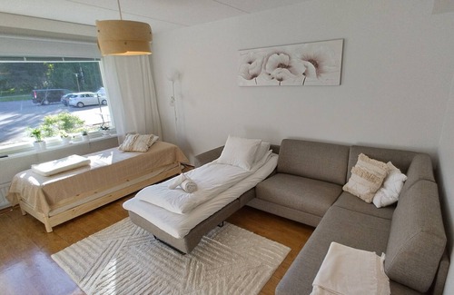 Este apartamento tan agradable en Lahti lo pone todo a tu alcance. El alojamiento dispone de aparcamiento en las instalaciones. Además, estarás a 5min en coche de Centro Comercial Trio y a 6min en coche de Plaza del Mercado, Lahti.