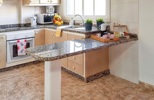 Las áreas comunes interiores son luminosas y acogedoras, con una decoración moderna que ofrece espacio tanto para la relajación como para el entretenimiento con familiares o amigos. La cocina está completamente equipada con todos los electrodomésticos y utensilios necesarios para preparar comidas.