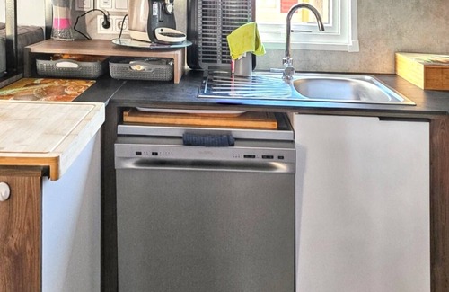 El área de estar abierta está diseñada para la comodidad y la convivencia, con un sofá acogedor, un comedor y todas las comodidades necesarias. La cocina equipada incluye electrodomésticos modernos como lavavajillas, microondas y cocina, haciendo que cocinar sea un placer. Aquí encontrarás todo lo que necesitas para una estancia cómoda.