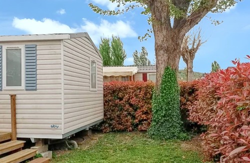 Descubre este encantador bungalow, perfecto para familias y grupos pequeños que buscan diversión y comodidad. A solo unos pasos de la piscina compartida, disfruta de la tranquilidad de tu jardín privado cerrado.