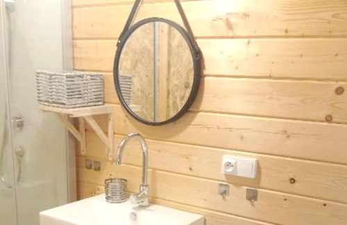 The chalet has a comfortable bedroom with a double bed. The bathroom is fitted with a shower and a toilet.