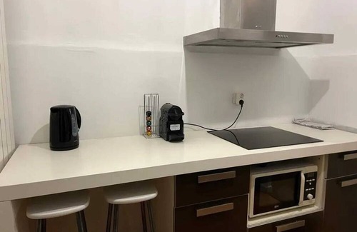The common areas of this apartment are designed to provide you with all the comfort you need during your stay. The kitchen is fully equipped with a dishwasher, microwave, coffee maker, stove, and refrigerator, allowing you to prepare your meals just like at home. A comfortable sofa awaits you in the living room, perfect for relaxing in front of the TV after a busy day. Internet is available for you to stay connected, whether for work or leisure.