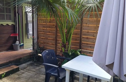El estudio cuenta con un hermoso jardín cercado donde puedes relajarte con un libro o disfrutar del sol. El jardín bien cuidado tiene una cancha de petanca, perfecta para divertidas tardes. Afuera también hay una terraza donde podrás disfrutar de tus comidas al aire libre mientras admiras la vista escénica.