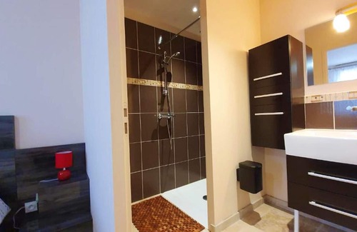 The house has 2 comfortable bedrooms, 1 including a double bed and a private bathroom with a shower and 1 including 2 single beds and a private bathroom with a shower. The 2 bathrooms are fitted with a shower.