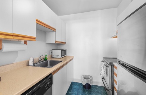 Prepara una comida casera en la cocina, equipada con horno, frigorífico y lavavajillas, además de cafetera y tetera, utensilios de cocina y tostadora. Conéctate al wifi gratis, o relájate frente a un Smart TV. El cuarto de baño incluye un secador de pelo y toallas. Y como hay una lavandería en los alrededores, no necesitarás llevarte mucho equipaje. Otras comodidades de este alojamiento de 1 dormitorio y 1 baño incluyen ropa de cama, una tabla de planchar, aire acondicionado y calefacción.