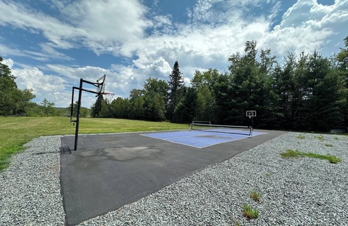 Love amenities? This property is fully equipped with a heated in-ground saltwater pool, outdoor kitchen, bocce ball court, basketball/pickle ball court, soccer field, and a fun-filled indoor game room — all designed to keep your group entertained and comfortable.