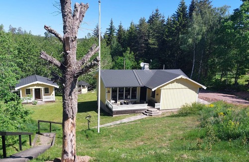Vacation only 800 m from the lake Ver in Småland awaits you in the holiday home "Bjärkhult". about 25 km from Vimmerby. You live on approx. 80 square meters with a view of the beautiful nature of Småland. A small lake is about 200 meters away and Ver 800 m away. The modern holiday home was completely renovated in 2022 and has attractive and fresh furnishings. Small but fine extras such as washing machine, dishwasher, television are integrated.