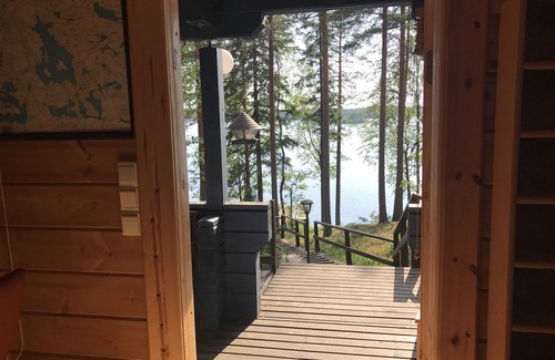 Preciosa cabaña de madera soleada para 7 personas en la naturaleza salvaje del lago Ilmajarvi.