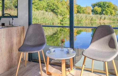 Sumérjase en unas vacaciones extraordinarias en esta casa flotante confortable y modernamente amueblada en el pintoresco Havelsee. El interior impresiona por sus colores vivos y las amplias superficies acristaladas que ofrecen una vista única del agua. Utilice la pequeña y práctica cocina para preparar pequeñas comidas o tentempiés para sus excursiones. Relájate en el acogedor sofá o disfruta de las comidas juntos en la acogedora mesa de comedor mientras admiras el paisaje exterior.