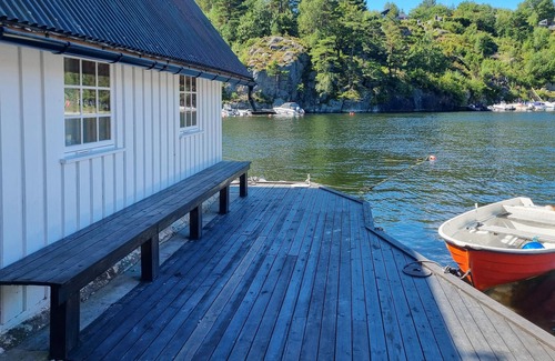 Descubra esta encantadora casa de vacaciones junto al agua, en la idílica isla de Justøya.