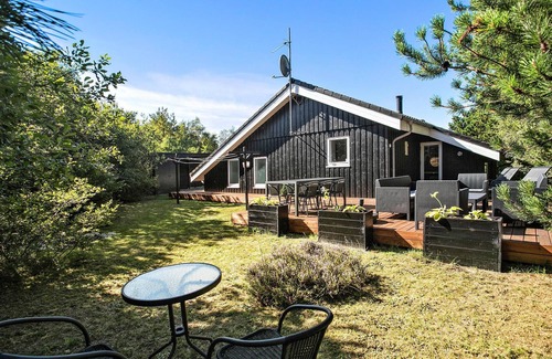 Esta magnífica casa de vacaciones está situada en una parcela natural cerca de la belleza natural del bosque de Tranum Klitplantage, el valle de Fosdalen y la reserva de Ulvedybet. Aquí tendrá una estancia agradable aunque no vaya a la playa. Sauna, piscina y bañera de hidromasaje proporcionan diversión y relajación. Cuatro luminosos dormitorios y un sofá cama en el salón proporcionan un ambiente acogedor. La espaciosa cocina-salón tiene un desnivel, si bajas dos escalones llegas al acogedor salón. Desde el salón se accede a la terraza.