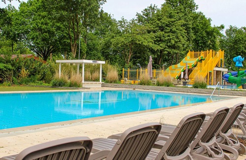 Situado en el centro del camping, desde aquí se puede acceder fácilmente a todas las instalaciones. La piscina exterior y el estanque con playa se encuentran a pocos pasos. El parque infantil, el zoo de mascotas y las instalaciones de restauración también se encuentran en las inmediaciones. Se puede llegar al chalet en coche, que también se puede dejar en el alojamiento.
