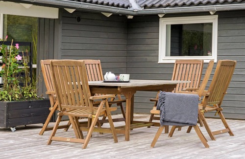 Disfrute de la vida relajada en esta cómoda casa de vacaciones con una amplia terraza.