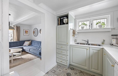 Disfrute de unas vacaciones tranquilas y relajantes en esta casa de vacaciones amueblada con cariño, que se integra armoniosamente en la pequeña localidad costera de Tvedestrand. Rodeada de antiguas casas de madera y floridos jardines, aquí podrá pasar unas vacaciones tranquilas con su familia. Relájese en la luminosa sala de estar en el gran sofá, vean juntos una película o lean un libro con la ventana abierta. El mobiliario es de inspiración nórdica, con colores vivos, líneas limpias y detalles acogedores. En la encantadora cocina se pueden preparar deliciosas comidas sin esfuerzo. El comedor independiente ofrece mucho espacio para cenas acogedoras o desayunos en un ambiente agradable.