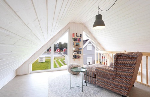 La casa de vacaciones es moderna y acogedora en estilo escandinavo. Gracias al primer piso tipo galería y a las enormes ventanas panorámicas que se extienden desde el suelo hasta el techo, la casa es especialmente luminosa y acogedora. La vista cae una y otra vez y desde todas partes sobre el encantador paisaje, el agua y el colorido ajetreo de los alrededores.