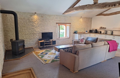 Se accede a esta casa rural del primer piso por una escalera a medida y tiene hermosos techos abovedados y vigas a la vista. Cuenta con dos habitaciones: una con una cama king-size y la otra con dos camas individuales. Cuenta con una sala de estar / comedor de planta abierta y cocina con lavavajillas, microondas, vitrocerámica y horno.