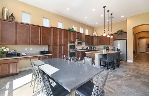 Con estacionamiento en la calle para tres autos, una parrilla de gas al aire libre y asientos en el patio para 8, el lugar está listo para la fiesta en la piscina. O invite a sus amigos a un festín gourmet en el amplio comedor interior: la cocina completamente equipada con encimeras de granito y electrodomésticos de acero inoxidable facilita la canalización de su Contessa descalza interior.