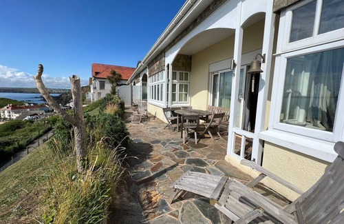 The Old Colonial House, construida originalmente en la década de 1920, se encuentra en una posición espectacular frente al oeste a través de Hope Cove, la playa y la bahía de Bigbury. Starboard tiene impresionantes vistas ininterrumpidas desde todas las habitaciones, tiene una gran terraza privada de 50 pies + que ofrece espectaculares vistas de la puesta del sol. La propiedad se encuentra entre las aldeas gemelas de Inner & Outer Hope en el sendero costero del suroeste. Nos encontrará justo debajo de St. Clements, la capilla de los pescadores del siglo XVI. Starboard es un alojamiento fabuloso de Hope Cove recientemente renovado y con impresionantes vistas panorámicas de la costa, que se extiende mucho más allá de la isla de Burgh y a lo largo de la costa sur de Devon. Un destino de vacaciones junto al mar perfecto, a solo unos minutos a pie de una de las playas de arena solitarias más hermosas de Devon.
