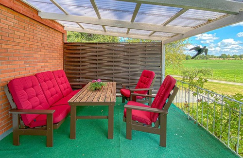 Protegida del viento y la intemperie, la zona de asientos cubierta es el lugar ideal para comer al aire libre. Disfrute desde aquí de las tranquilas vistas del extenso paisaje y siéntese a relajarse. Termine el día con una acogedora barbacoa en buena compañía.