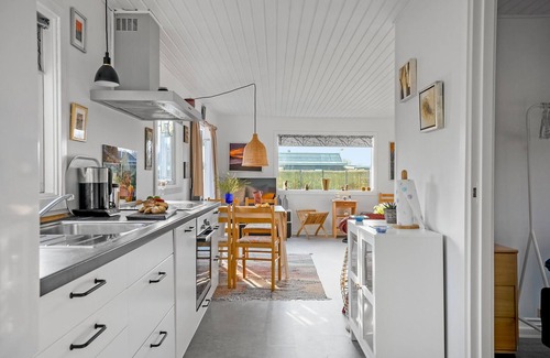 Relájese junto al fiordo de Roskilde y disfrute de su tiempo libre en esta casa de vacaciones, que combina lo acogedor con lo nórdico. El luminoso salón le da la bienvenida con un ambiente acogedor y de buen gusto. Utilice la cocina abierta y el comedor para preparar comidas juntos y luego relájese en la mesa de comedor o en el sofá. Ponte cómodo con un libro o un juego de mesa o disfruta de las vistas de la vegetación a través de los grandes ventanales. Una acogedora sala independiente con un cómodo sofá ofrece otro refugio para las horas de relax.