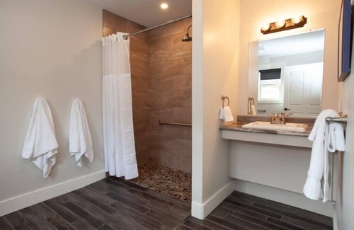 Disfrute de una estancia de lujo en Indian Falls Chalets. Este lugar de Serenity Forest Chalet es 1 de 3 chalets de alta gama en la propiedad. Abierto todo el año y accesible en silla de ruedas.