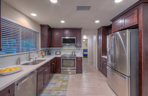 ~ VISTAS AL CAMPO DE GOLF ~ ¿Anhelando vivir como una celebridad? Conviértase en un huésped en nuestra casa de 4 BA más futón recientemente renovada y céntrica, de 3 BA con vista al prístino campo de golf Starfire y se sentirá como uno. Esta casa y vecindario de lujo garantizan que su estadía no solo sea cómoda, sino también excepcional en calidad y comodidades. La casa tiene capacidad para 12 y es ideal para familias numerosas o familias múltiples que desean la mejor escapada. Para reservas de más de 31 días, debe comunicarse directamente con Arizona Vacation Home Rentals. Estas reservas más largas requieren un contrato de alquiler entre usted y el propietario de la casa que sea diferente al nuestro. Nuestra hermosa casa está situada en un amplio patio con árboles maduros e incluye una vista panorámica de las montañas McDowell, además de las vistas del campo de golf público Starfire de 27 hoyos. El vecindario se encuentra a 10 minutos en coche del casco antiguo de Scottsdale, que ofrece actividades multiculturales emocionantes durante todo el año. Los entrenamientos de primavera para los Gigantes de San Francisco, los Rockies de Colorado, los Diamondbacks de AZ y los Cachorros de Chicago, ir de excursión a Camelback, ir de compras a Fashion Square y explorar el zoológico de Phoenix, Desert Botanical Gardens o Taliesin West, la casa de Frank Loyd Wright, son solo algunos de los más notables. destinos en la zona. Otras opciones emocionantes incluyen spas de día, numerosos campos de golf y restaurantes, exhibiciones de autos, eventos ecuestres y las impresionantes atracciones naturales únicas de Arizona.. ~ DETALLES QUE ENTREGAN ~ La casa de estilo rancho es espaciosa y luminosa con muchos ventanales que invitan a la luz natural a cada rincón. El plano de planta abierto y los hermosos pisos de baldosas crean espacios de vida elegantes diseñados para ser elegantes pero cómodos. La sala de estar cuenta con un lujoso sofá seccional con una silla incorporada convenientemente dispuesta para ver la televisión de pantalla grande o participar en conversaciones animadas. La sala de estar se transforma en un elegante comedor formal con asientos acolchados para 8 y asientos adicionales en la isla de la cocina. La cocina de nuevo diseño está totalmente equipada con electrodomésticos de acero inoxidable, amplio espacio de encimera de granito y el deseo de su corazón en accesorios de cocina. La cocina tiene capacidad para varios chefs y tiene un diseño ideal para servir su cocina favorita con estilo. Las ventanas extra anchas iluminan los espacios de trabajo y aseguran vistas al aire libre del patio cubierto y la piscina privada. Y las amenidades emocionantes continúan ... Una sala de juegos con decoración rústica cuenta con billar y mesa de Black Jack, además de una chimenea incorporada y un gran televisor de pantalla plana para lo último en relajación y entretenimiento. Esta sala de juegos puede convertirse en otra habitación si los huéspedes desean agregar una cama queen. La sala de lavandería completamente equipada está cerrada detrás de las puertas en la habitación extra con un futón. ~ CUARTOS DE DORMIR ~ La suite principal cuenta con una cama King de lujo, un amplio armario con vestidor y un baño encantador con ducha contemporánea y tocadores dobles. Las habitaciones restantes ofrecen una variedad de arreglos para dormir: la segunda habitación tiene dos camas individuales de longitud extendida; el tercer dormitorio tiene una cama king; el cuarto