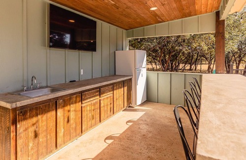 Comodidades adicionales: cocina completamente surtida, lavaplatos, lavadora / secadora, asador de carbón, refrigerador al aire libre, televisores en la sala de estar y cabaña al aire libre