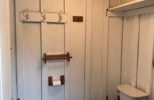 El medio baño de la cabaña no tiene aire acondicionado ni calor.
