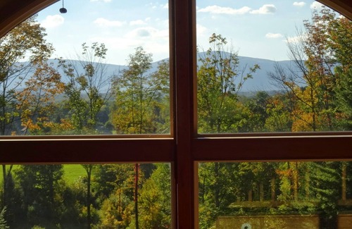 Nuestra casa es una hermosa casa de estilo montañés (vigas a la vista, pisos de madera, todos los electrodomésticos nuevos) en un camino rural tranquilo con vistas al valle de Housatonic y al monte. Everett. Seis millas a Great Barrington en el corazón de Berkshires. La casa tiene cinco dormitorios, dos salas de estar, área de loft y 3. 5 baños. Tenemos una terraza envolvente, porche filtrado, pozo de fuego al aire libre y parrilla de carbón. La casa se encuentra en 5 acres exuberantes en un largo viaje privado. ¡Mágico!