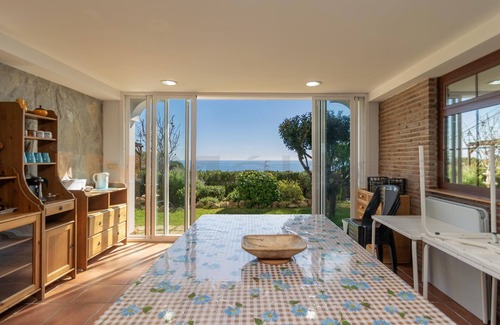 El espacioso salón está perfectamente amueblado, con un cómodo sofá donde relajarte después de un día de playa, una televisión para disfrutar de tus programas favoritos, y un comedor para compartir agradables momentos. Además, el salón se abre a una terraza privada con vistas al mar, creando el lugar perfecto para relajarte o disfrutar de una comida al aire libre mientras admiras el paisaje.