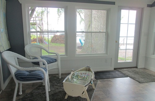 ¡Tierra plana ... no hay escalones para subir! Disfruta de nuestra casa de dos dormitorios frente al lago con todas las comodidades del hogar. El dormitorio principal ofrece una puerta corrediza de vidrio hacia una terraza bellamente amueblada con vista al lago. El segundo dormitorio puede dormir 5 con una cama matrimonial y un futón de tamaño completo con una litera doble. Ambas habitaciones ofrecen un televisor de pantalla plana con cable. Wi-Fi disponible. Una lavadora y secadora están disponibles para su uso. Se agregó una hermosa terraza acristalada de vidrio en 2013 para disfrutar de comidas, leer o simplemente relajarse. Se proporciona una parrilla de gas para cocinar al aire libre. Observe las hermosas puestas de sol alrededor del pozo de fuego y brinde algunos malvaviscos. Varios juguetes del lago (barco de pesca, bote de remos y canoa) están disponibles para su disfrute. Una gran caja de arena a la sombra de un hermoso sauce está equipada con todo tipo de juguetes de arena para el disfrute de sus pequeños. Disfruta de la sombra bajo los hermosos sauces llorones. El aire acondicionado y el calor central se controlan a la temperatura deseada del ocupante. Estamos ubicados en la ruta del vino Seneca, junto al parque estatal Sampson, a minutos del centro comercial Waterloo Outlet y de las compras en la ciudad de Ginebra. Las tarifas de verano serán de $ 1,900 por semana alquilando de sábado a sábado. La tarifa incluirá su tarifa de limpieza. Las sábanas están disponibles para su uso, pero deben lavarse y guardarse antes de partir.