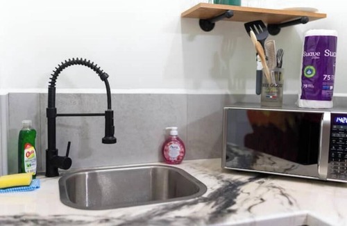 This apartment on the ground floor is newly renovated in 2024 and features black out curtains and a reggae theme.