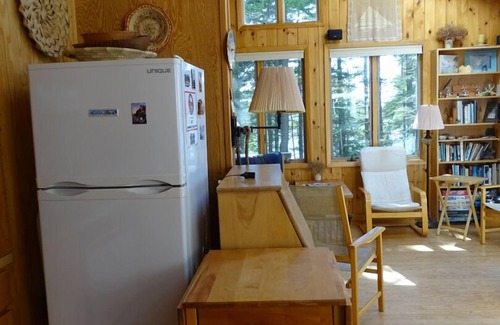 La cabaña tiene un concepto abierto de sala / comedor / cocina con estufa de leña (se proporciona madera). Los techos de las catedrales llenan el espacio con mucha luz natural. Cuenta con 2 habitaciones: la principal con cama Queen y una segunda habitación con dos camas individuales. Se proporciona toda la ropa de cama. Hay un baño con inodoro, lavabo y ducha. Se proporcionarán toallas de baño, papel higiénico, así como jabón de baño y champú. La cocina tiene una estufa de tamaño completo y un refrigerador (ambos alimentados con propano). Se proporcionan todos los platos, ollas y sartenes, así como toallas de papel, azúcar y especias básicas. Hay una gran cubierta envolvente con dosel y asientos para comidas al aire libre. También se proporcionan parrilla al aire libre y cocina de langosta con propano.