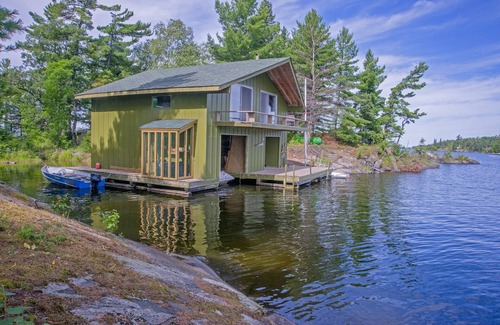 Encantadora cabaña recreativa en un control remoto privado de 2. 2 acres de isla ubicada en Lake of the Woods, Ontario, Canadá. Se encuentra a 20 millas por barco desde la carretera más cercana, pero al lado de la pista de Medio impulsado entre Kenora y Sioux Narrows, ON, lo que hace que sea relativamente fácil de encontrar en el laberinto de islas de los alrededores. La rústica, pero cómoda cabina fuera de la red tiene agua caliente, energía solar, nevera de gas, cocina y cocina, ducha de agua caliente, servicio de celular e Internet por satélite / WiFi. Se encuentra en las zonas de pesca de primera en una parte hermosa y remota del lago fotogénica y el paisaje ofrece innumerables oportunidades para practicar el canotaje, camping, natación, vela, deportes acuáticos y mucho más.