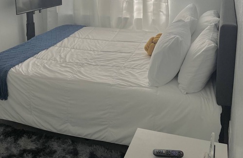 La cocina está equipada con horno, placa de cocina y frigorífico, además de cafetera y tetera, máquina de hielo y microondas. El cuarto de baño incluye un secador de pelo, toallas y jabón. Otras comodidades incluyen ropa de cama y una mesa de comedor.