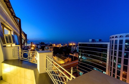 Romantic three-room Penthouse with Jacuzzi-Spa by the window with a terrace-barbecue and views of the city, sea, Lighthouse and Sea Terminal near Deribasovskaya Street. Hydro / Aero Massage. Chromotherapy. The heating system of all steps and the floor of the spa. Exclusive luxary design. 24 hour security. Access system. Video monitoring. On the ground floor there is a fish restaurant. 3 rooms. 2 separate bathrooms. Convenient for 2, 4, 6 or even 8 people. Daily / Long Term.