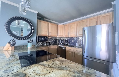 Descubra una encantadora sala de estar, comedor y cocina renovada con mostradores de granito y electrodomésticos de acero inoxidable. El balcón proporcionará un lugar ideal para relajarse y descansar cuando no se reúne con sus seres queridos. Entonces, salga a la salida del sol, salga a la puesta del sol o simplemente tome un momento durante el día para respirar el aire salado del mar.